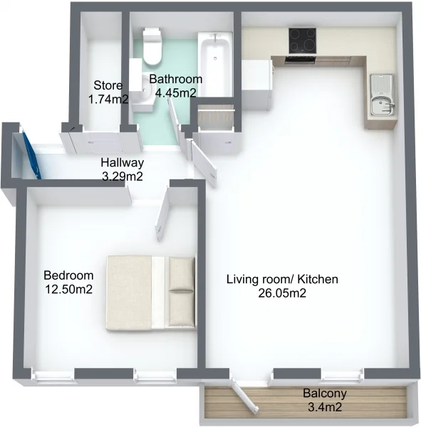 2 X 2 bedroom apartments 61.5m2 with outside area